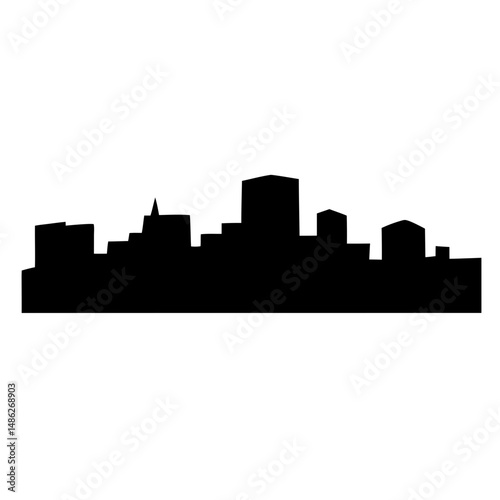 © PixelArtBox, Naklejka premium Dramatic cityscape silhouette with contrasting dark buildings against a bright sky backdrop