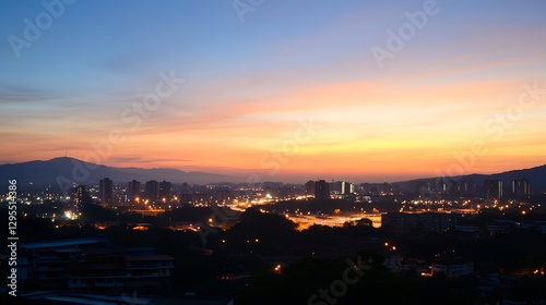 Obraz premium Dramatic Cityscape View at Twilight with Colorful Urban Lights Illuminating...