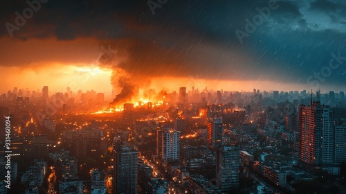 © Media Srock, Fototapeta premium Dramatic cityscape with fire and smoke