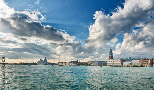 Naklejka premium Dramatic clouds above a Venice cityscape