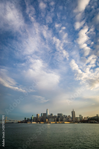 Fototapeta premium Dramatic clouds and blue sky over the San Francisco skyline including the bay...