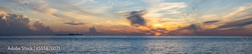 Fototapeta premium dramatic clouds during sunset over the sea, panoramic view