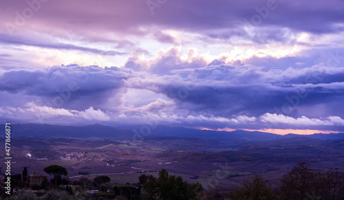 © 4kclips, Fototapeta premium Dramatic clouds on a stormy evening - travel photography