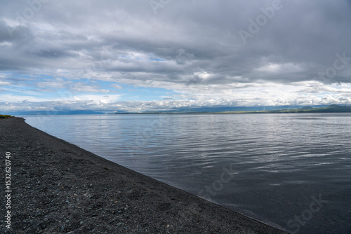 Obraz premium Dramatic Clouds Over a Calm Mountain Lake