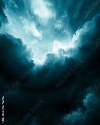 Fototapeta premium Dramatic Clouds with Turquoise Hues and Celestial Light Burst Through