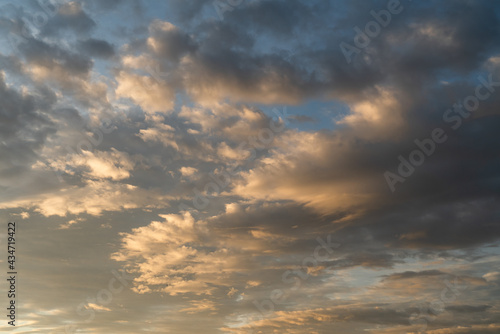 Fototapeta premium Dramatic cloudscape on sunset with glowing cumulus clouds