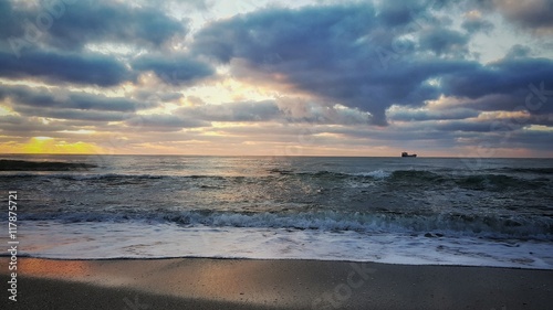 Fototapeta premium Dramatic cloudscape over the sea, sunrise shot