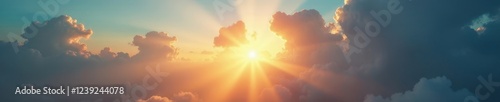 Obraz premium Dramatic cloudscape, sun rays pierce through, divine light, texture, clouds