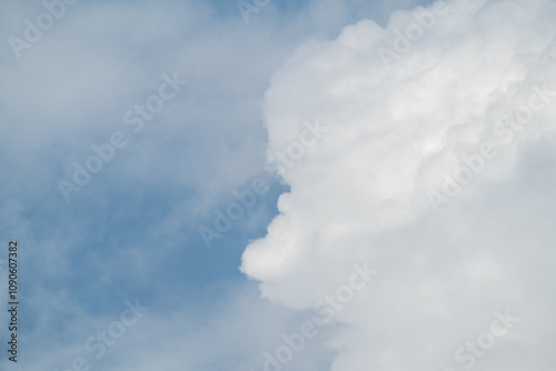 © Husaini, Fototapeta premium Dramatic cloudscape with fluffy cumulus clouds against a vibrant blue sky. This versatile image evokes feelings of freedom, peace, and possibility.