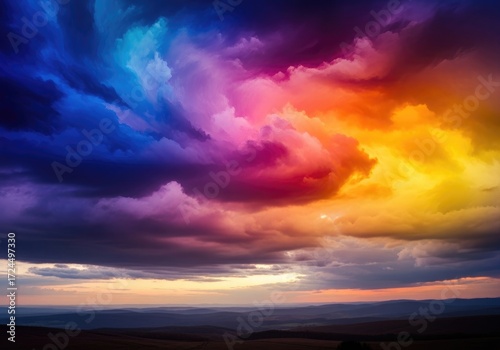© Hajara, Fototapeta premium Dramatic Cloudscape with Intense Color Gradient Over Rolling Hill Landscape View