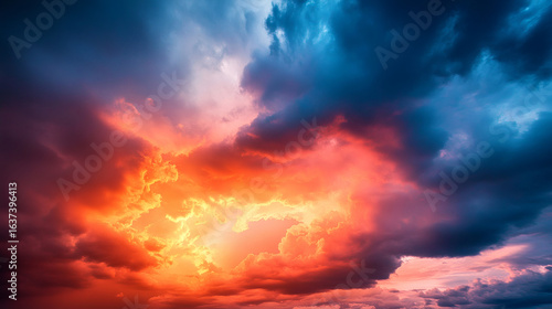 Obraz premium Dramatic cloudscapes with vibrant colors at sunset.