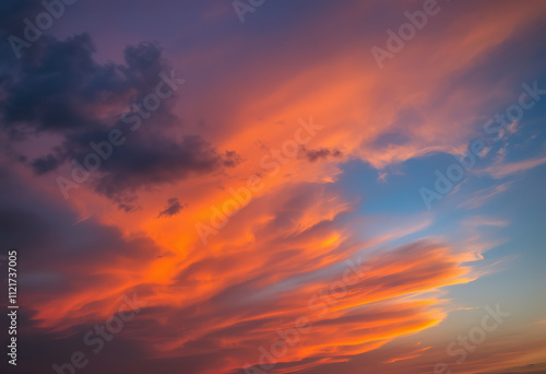 Fototapeta premium Dramatic cloudy sky with vibrant orange and blue colors at sunset