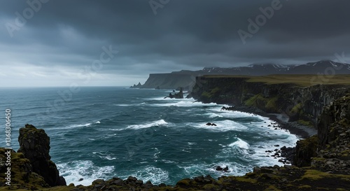 Obraz premium Dramatic Coastal Cliffs Dark Moody Ocean Waves. AI Generated