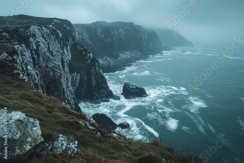 © Outkast, Obraz premium Dramatic Coastal Cliffs Under a Foggy Sky