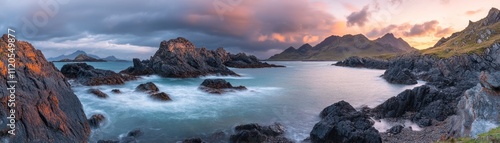 © Penatic Studio, Obraz premium Dramatic Coastal Sunset Over Rugged Mountains And Rocks
