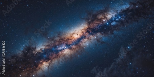 © The 2R Artificiality, Fototapeta premium Dramatic Cosmic Scene Highlighting a Colorful Galaxy with Soft Focus and Deep Space Elements in a Starry Night Sky Background