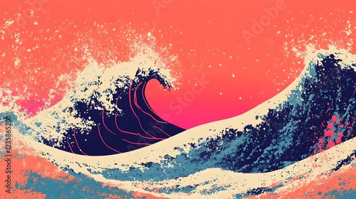 © Prasong Takham, Obraz premium Dramatic Crimson Sunset Waves Crashing in Turbulent Ocean Seascape