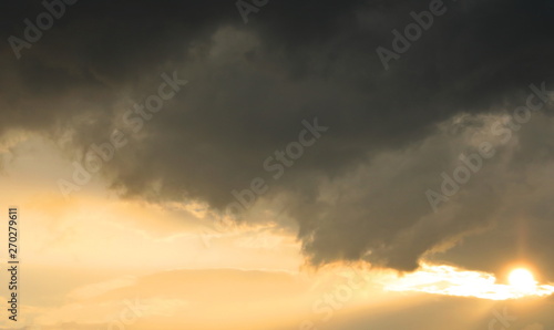 Obraz premium Dramatic dark clouds on orange sky background and texture