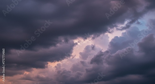 Fototapeta premium Dramatic Dark Cloudscape at Sunset with Purple and Pink Hues