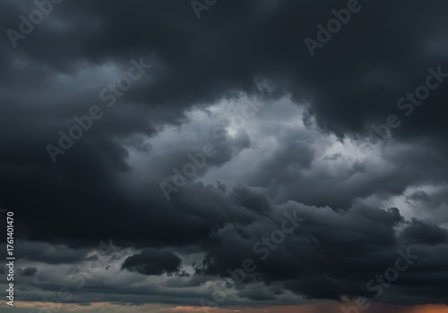 © Alex, Obraz premium Dramatic Dark Storm Clouds Gathering Over Horizon.