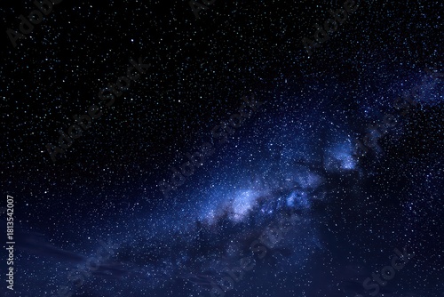 © RizmaCreative, Fototapeta premium Dramatic Deep Blue Starry Night Sky with Milky Way Galaxy and Scattered White Stars in Celestial Space