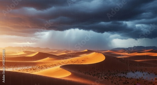 Obraz premium Dramatic Desert Storm Approaches With Golden Hour Light