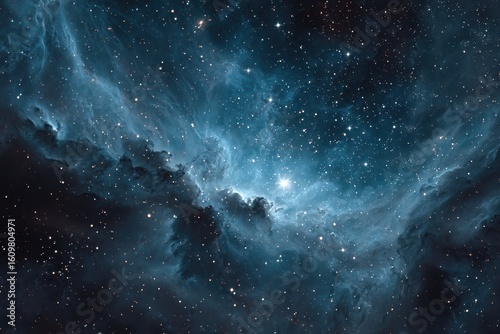 © SaroStock, Obraz premium Dramatic display of a distant galaxy featuring swirling blue and purple nebulae and a bright, central burst of radiant light
