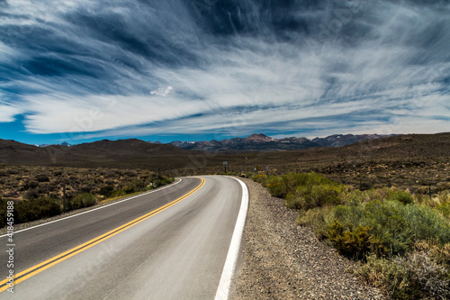 © Nathaniel Gonzales, Fototapeta premium dramatic empty and lonely back road in the California desert.