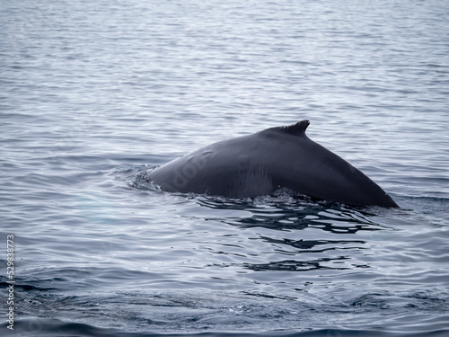 © Luis, Fototapeta premium Dramatic encounter with a Humpback whale and its calf among enormous icebergs, disko Bay, Ilulissat, Western Greenland