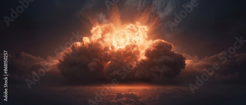 Obraz premium Dramatic explosion in the sky with fiery clouds illuminating the scene,...