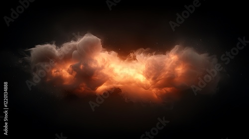 Fototapeta premium Dramatic explosion of fiery clouds illuminating a dark sky, creating a...