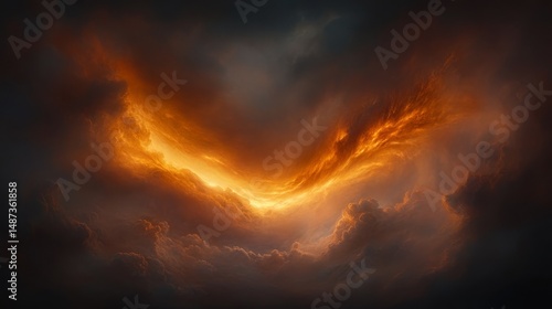 Fototapeta premium Dramatic Fiery Sunset Sky Cloudscape Intense Orange Hues Heavenly Glow