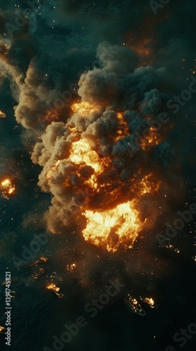 © nahwul, Obraz premium Dramatic Fireball Ascending into a Swirling Cloudscape of Smoke and Debris