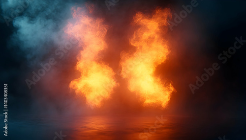 © wear, Obraz premium Dramatic flames rising in a smoky atmosphere, creating a captivating visual effect for creative use