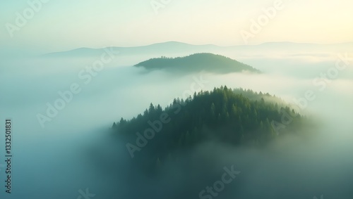 Fototapeta premium Dramatic Fog Rolling Over Mountain Peaks at Sunrise