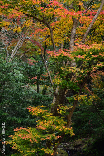 Naklejka premium Dramatic forest in autumn season at Minoo park in Osaka, Japan