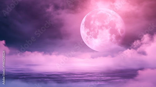 Fototapeta premium Dramatic full moon in a pink and purple cloudscape atmospheric night scene