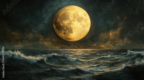 Fototapeta premium Dramatic full moon over ocean waves at night