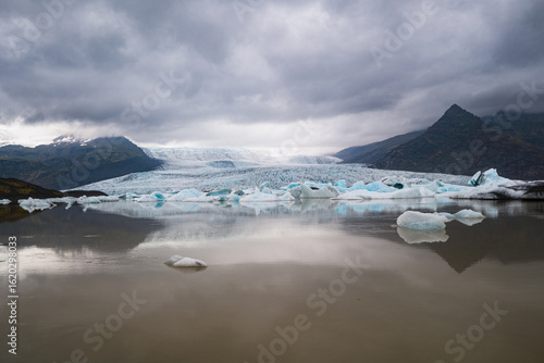 Fototapeta premium Dramatic Glacier Landscape with Icebergs Under Stormy Sky