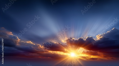 Obraz premium Dramatic Golden Sunset Illuminating Fluffy Clouds in a Gradient Sky from Blue...
