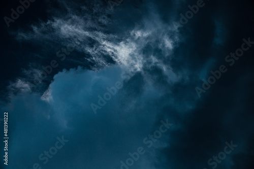Fototapeta premium Dramatic Grey Cloudy Sky. Big powerful clouds contrasting with dark sky.