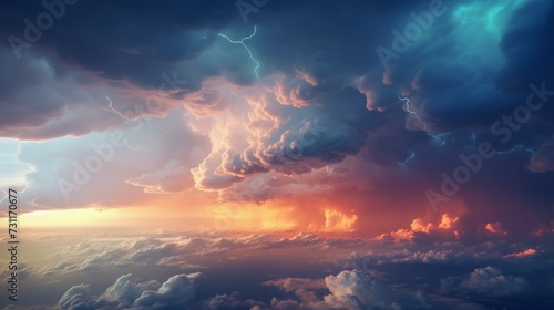 © Wolfilser, Fototapeta premium dramatic huge clouds of thunderstorm on sky with sunset