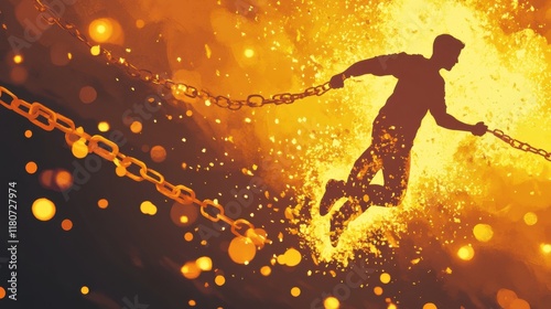 © ARBA, Naklejka premium Dramatic Image of Breaking Chains with Glowing Sparks