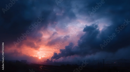 © Thares2020, Fototapeta premium Dramatic industrial landscape at sunset