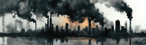 Obraz premium Dramatic Industrial Landscape Highlighting Pollution and Urban Development