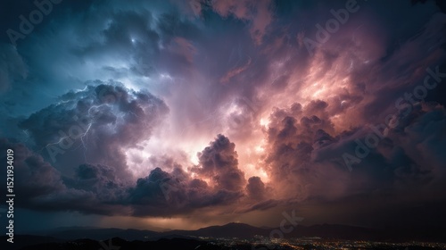 Naklejka premium Dramatic 8K Thunderstorm Sky Dark Clouds, Lightning, and Intense Colors