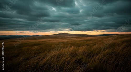 © edo, Fototapeta premium Dramatic Landscape Golden Field Under Stormy Sky - Tranquil Meadow View
