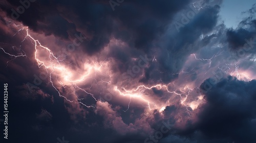 © Nazia, Fototapeta premium Dramatic lightning bolt striking dark sky during powerful storm