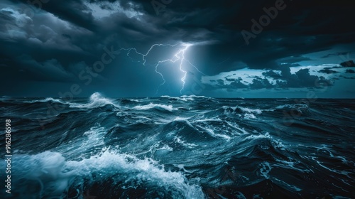 © AURA COLLECTIONS, Fototapeta premium Dramatic Lightning Strike Over Rough Sea.