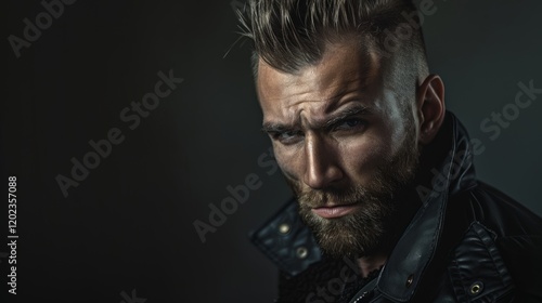 © Rafliii, Obraz premium Dramatic Man in Dark Setting with Bold Expressions